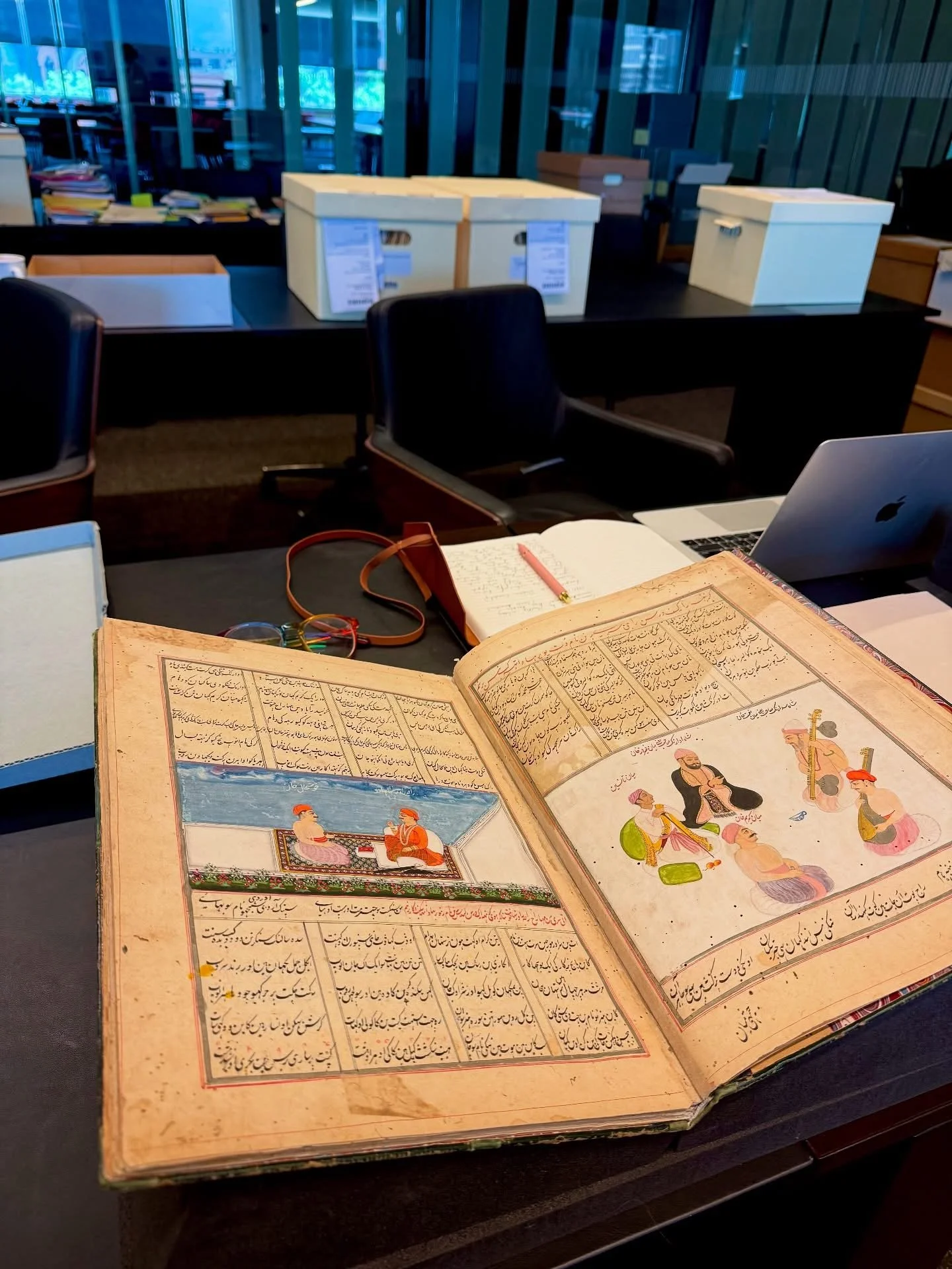 This research is grounded in sustained engagement with special collections and rare book libraries, emphasizing hands-on analysis of manuscripts, codices, and archival materials across South Asian, Persian, and Islamicate traditions.